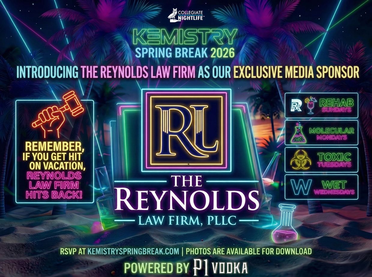 THE REYNOLDS LAW FIRM NAMED EXCLUSIVE MEDIA SPONSOR FOR COLLEGIATE NIGHTLIFE’S KEMISTRY SPRING BREAK
